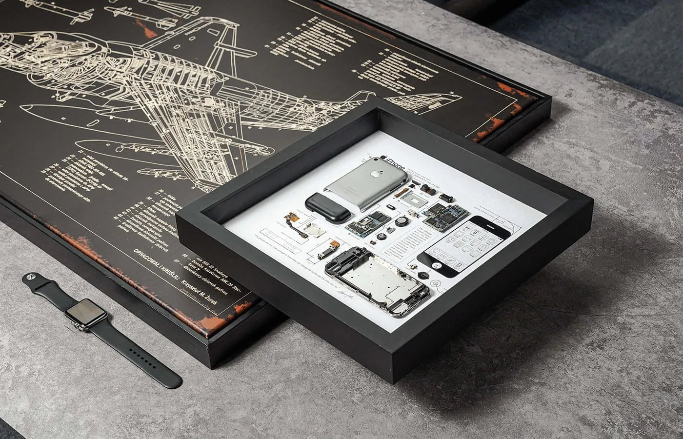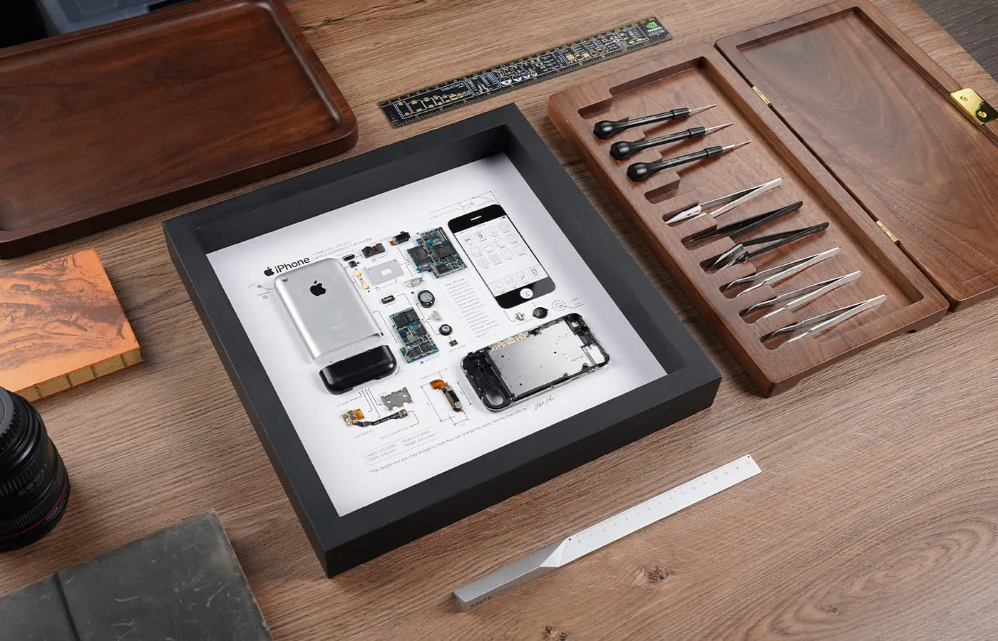 Yes, we source second-hand phones, then disassemble and redesign them. The entire process involves disassembly, cleaning, disinfection, redesigning, framing, and more, ultimately resulting in a beautifully framed piece of art. Note: we use dummy battery case models to eliminate potential risks, such as battery rupture that could release harmful gases and toxic chemicals.
